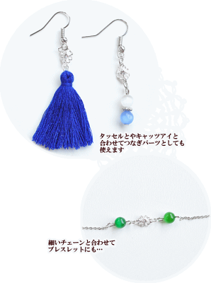ブレスレットやネックレス、ピアスなどのアクセサリー作りにオススメです。