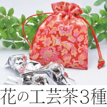 花のお茶・工芸茶3種セット(錦の巾着袋つき)